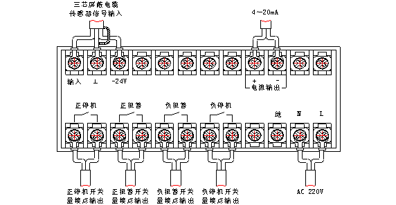 报警、停机延时调整范围0.5~3秒,以防止现场干扰引起误动作;